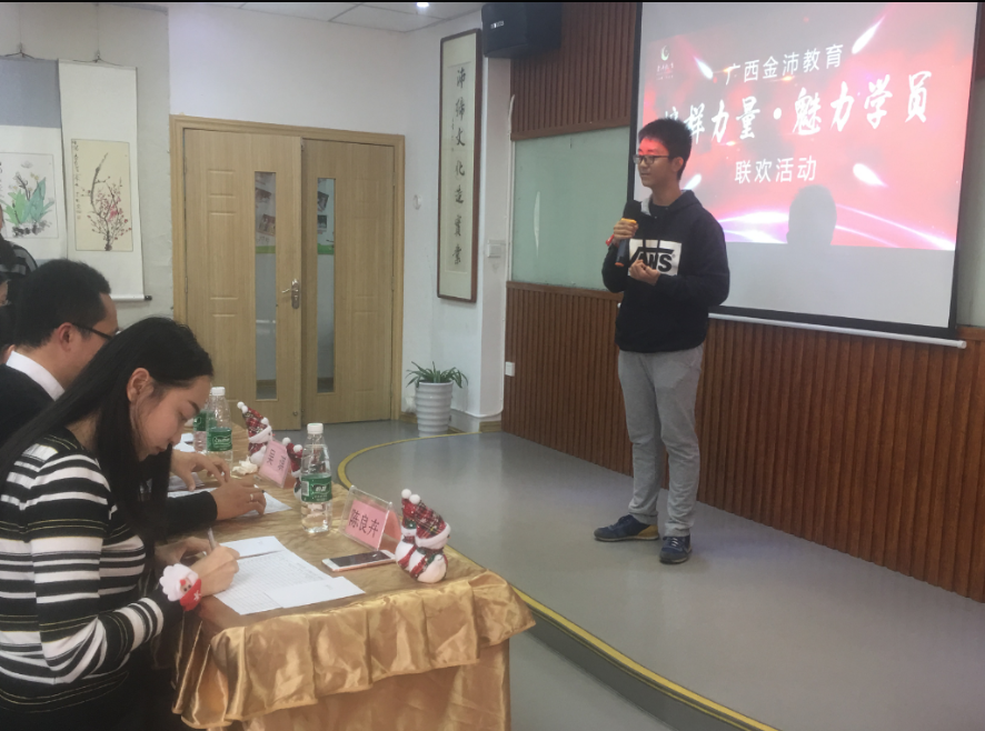 本次活動(dòng)由廣西金沛教育發(fā)展有限公司南湖校區(qū)主辦,旨在通過本次的匯報(bào)演講,促進(jìn)學(xué)員交流。金沛教育領(lǐng)導(dǎo)及金沛高級(jí)教師到現(xiàn)場(chǎng)觀摩了學(xué)員的演講,并為獲獎(jiǎng)選手頒獎(jiǎng)。