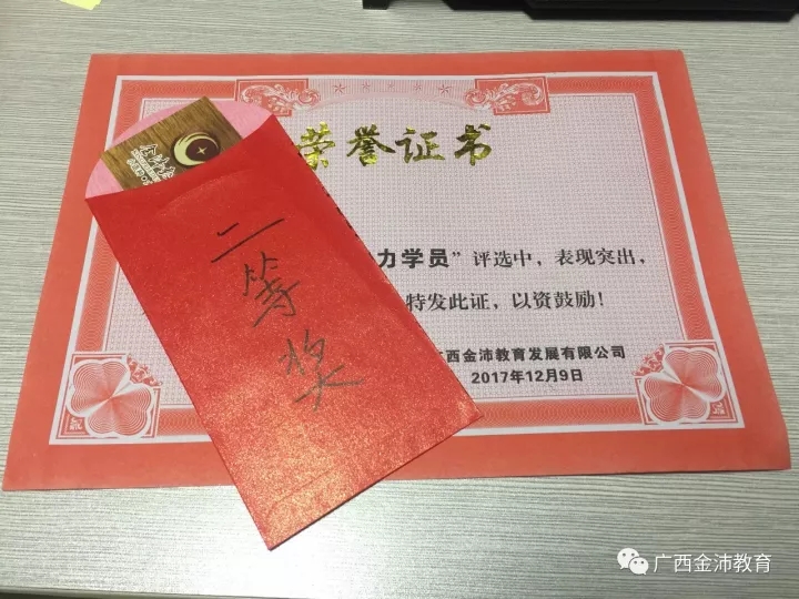 李珩立學(xué)員獲得二等獎(jiǎng)獎(jiǎng)金及證書