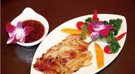 老撾多河流,自然產(chǎn)好魚,這里的魚個大柔嫩還鮮美多汁。當?shù)厝俗钕矚g將這種扁魚烤著吃。而且烤的方法很獨特,把魚內臟去凈后塞上一把新鮮的檸檬草。不但去腥,還讓魚平添一份檸檬的清香。最地道的老撾烤魚吃法是用生的綠菜葉子包裹著涼米粉、生茄子和蘸著調料的魚肉包一個大包,一口吞到嘴里,非常鮮嫩爽口。