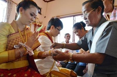 與中國不同,老撾流行倒插門,即男方主動到女方家里做上門女婿。婚禮也是由女方家操辦,這與老撾女性的社會地位日益提高息息相關。