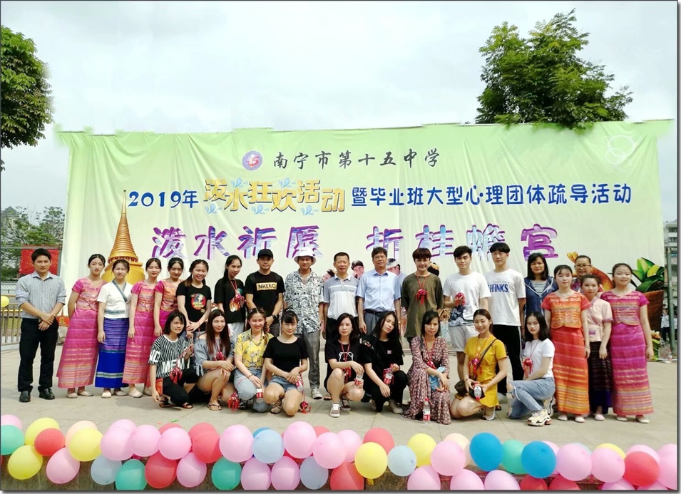 活動(dòng)開(kāi)始,高三學(xué)子進(jìn)行“游龍翻身”的游戲,取“游龍翻身取金榜,十五中學(xué)我最棒”的含義。接下來(lái)身著東盟各國(guó)傳統(tǒng)服飾的學(xué)生為大家獻(xiàn)上了優(yōu)美的東盟國(guó)家舞蹈,展現(xiàn)了東盟各國(guó)的傳統(tǒng)舞蹈的魅力。隨后由學(xué)校校長(zhǎng)帶隊(duì),各年級(jí)老師共同參與,手持水瓢,將滿載祝福的水輕灑向所有高三學(xué)子,拉開(kāi)了潑水狂歡的序幕。伴隨著歡快的音樂(lè),潑水狂歡將本次活動(dòng)帶向高潮,大家積極參與,手持水盆、小桶、水槍?zhuān)阕肺亿s,相互潑灑,傳遞著著祝福與歡樂(lè)。以多種形式將各國(guó)文化風(fēng)情融入學(xué)生的心理教育中。