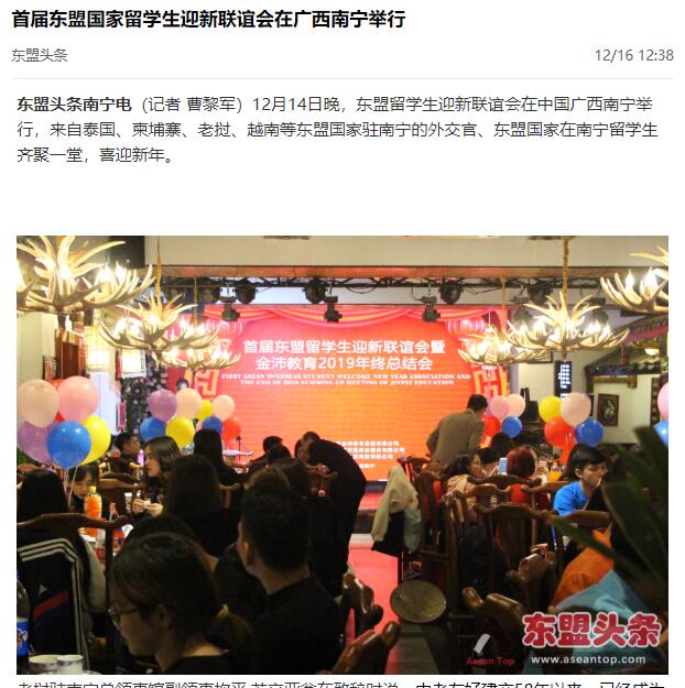 此次“首屆東盟留學(xué)生迎新聯(lián)誼會(huì)”得到東盟相關(guān)主流媒體的關(guān)注和報(bào)道,引起了東盟留學(xué)生的熱烈反響,這將為我們進(jìn)一步開展中國(guó)-東盟國(guó)際教育合作發(fā)展提供強(qiáng)有力的媒體支持。