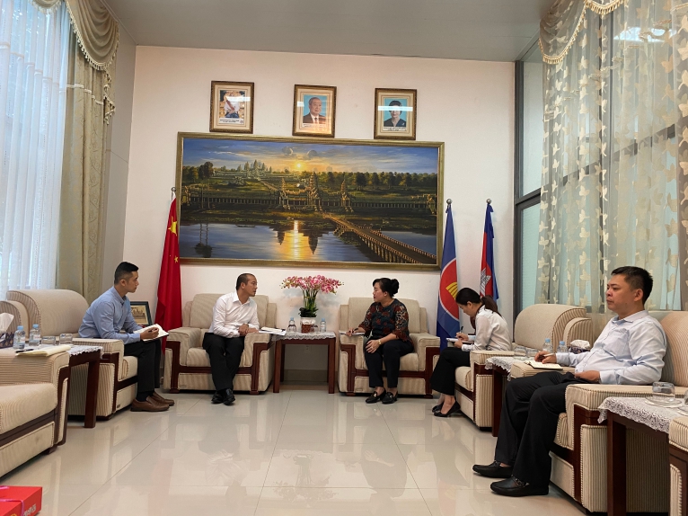 總領(lǐng)事輝蕾娜對我司的到訪表示熱烈歡迎,談到柬埔寨積極支持和參與共建“一帶一路”合作,兩國發(fā)展戰(zhàn)略高度契合,鑒于對我司極力搭建—東盟國際教育的優(yōu)質(zhì)服務(wù)平臺,注重中柬兩國的教育合作給予高度的認(rèn)可,雙方就如何開展相關(guān)活動和深入教育文化交流推介進(jìn)行探討。輝蕾娜總領(lǐng)事表示會全力支持我司開展與柬埔寨的教育合作交流工作,愿意為雙方搭建橋梁,培養(yǎng)更多國際化高端人才。