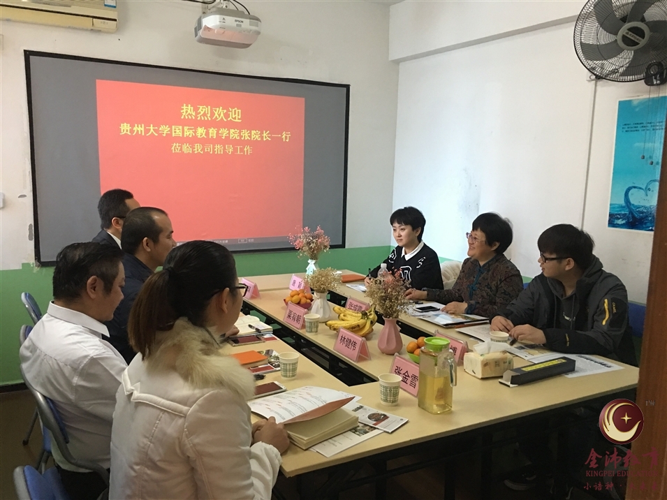 2017年12月2日上午,貴州大學國際教育學院張成霞院長與教學科科長唐穎、留學生輔導員李博一行蒞臨我司視察指導工作,由我司執(zhí)行董事粟宥朝、校長張金雪、國際部合伙人吳琪、林健偉老師接待來賓。