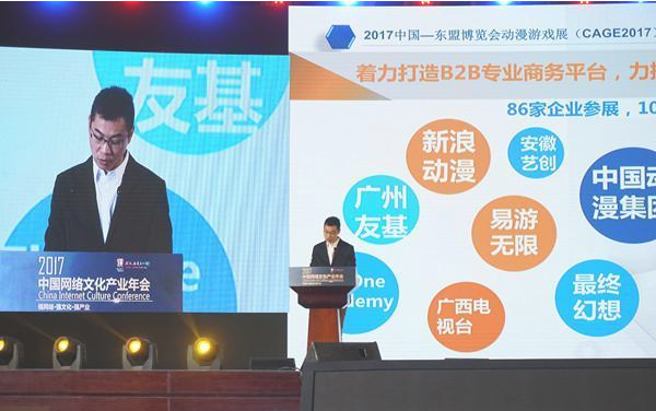 12月13日,中國(guó)—東盟博覽會(huì)秘書處在2017中國(guó)網(wǎng)絡(luò)文化產(chǎn)業(yè)年會(huì)游戲論壇上現(xiàn)場(chǎng)推介2018中國(guó)—東盟博覽會(huì)動(dòng)漫游戲展,中國(guó)動(dòng)漫集團(tuán)、武漢市委宣傳部、武漢市文化局、武漢數(shù)字創(chuàng)意與游戲產(chǎn)業(yè)協(xié)會(huì)和中國(guó)—東盟博覽會(huì)秘書處動(dòng)漫游戲展負(fù)責(zé)人出席了會(huì)議,網(wǎng)易游戲、騰訊公司、觸控科技、樂競(jìng)文化、愛奇藝、盛大游戲、蝸牛數(shù)字、亞聯(lián)資本、掌游科級(jí)等動(dòng)漫知名企業(yè)負(fù)責(zé)人到會(huì)交流。