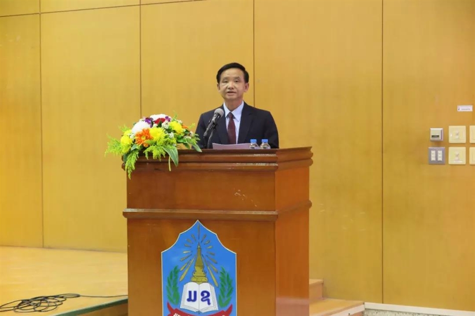 老撾國立大學副校長洪佩·占塔馮致歡迎辭。他代表老撾國立大學全體師生對許琳參事及代表團一行到來表示熱烈歡迎!洪佩·占塔馮副校長回顧了老撾國立大學孔子學院從建立到快速發(fā)展的歷程。他說,許琳參事在任孔子學院總部總干事、中國國家漢辦主任期間,對老撾國立大學孔子學院的發(fā)展給予了熱情關懷,并大力推動“中國政府援老撾國立大學孔子學院項目”的落實,他代表國立大學對許琳參事表示衷心感謝!他同時還表示,許琳參事本次講座的主題非常有意義,對教育全球化的發(fā)展提出了機遇和挑戰(zhàn),也有利于促進老撾國立大學鏈接區(qū)域與國際的未來發(fā)展。