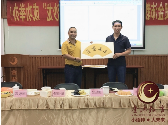 中華文化博大精深,在書(shū)法上的文化內(nèi)涵更是獨(dú)樹(shù)一幟,為加強(qiáng)中越兩國(guó)的文化交流,提高兩國(guó)間傳統(tǒng)文化的相互了解,金沛教育鳳嶺校區(qū)執(zhí)行董事、著名書(shū)法家岑亭儒給大家詳細(xì)講解了《中越文化之中國(guó)書(shū)法文化篇》,為中華傳統(tǒng)文化的發(fā)揚(yáng)也出了一份力,并代表金沛教育向越南代表贈(zèng)送了寓意為中越友誼的書(shū)法作品。