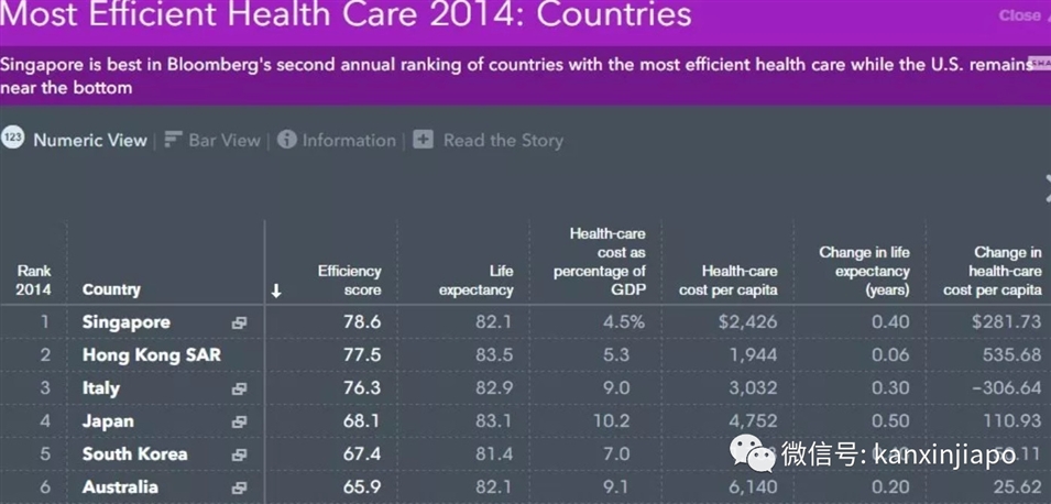 在彭博社發(fā)布的世界各國醫(yī)療效率排名表中,新加坡的醫(yī)療效率更是排到了全球第一!