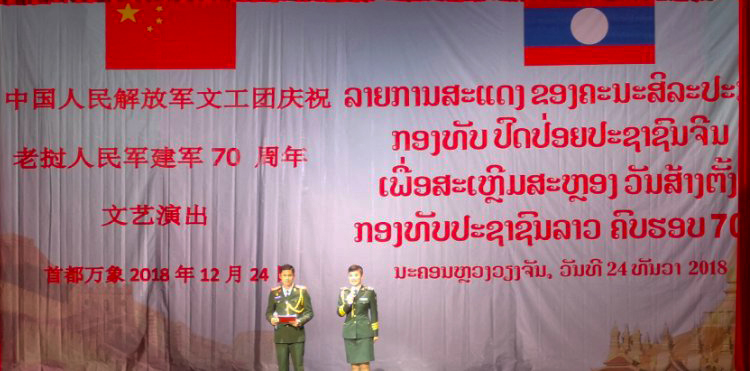 中國(guó)人民解放軍文工團(tuán)慶祝老撾人民軍建軍70周年文藝演出12月24日晚在老撾首都萬(wàn)象舉行。